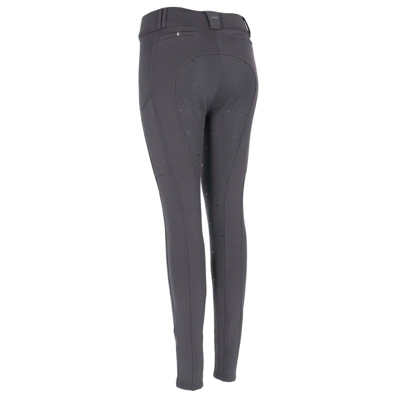 The Dorina Riding Tights FS are versatile riding leggings with a brushed interior for a comfortable fit. The full seat with silicone print ensures optimal grip in the saddle. Practical cell phone pockets on both sides offer additional storage space. A rubber logo print on the front, a logo print on the left leg, and logo print on the back belt loop give the leggings a modern look. Panel seams and welt pockets with logo snaps complete the design.